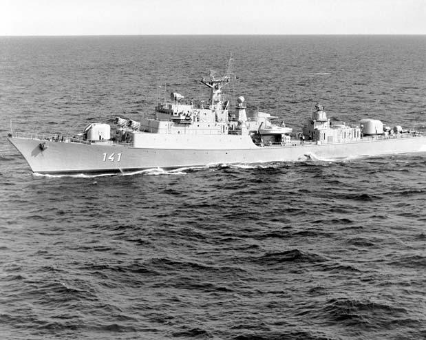 2nd Egyptian Frigate escort through the Suez Canal – “A Koni class frigate now modified by the Egyptian Navy as a minelayer and for close to shore support with her two 190 mm guns.”